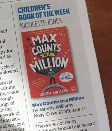 Nice to discover that Nicolette Jones has named Max Counts to a Million as her children’s book of the week in the Sunday Times.